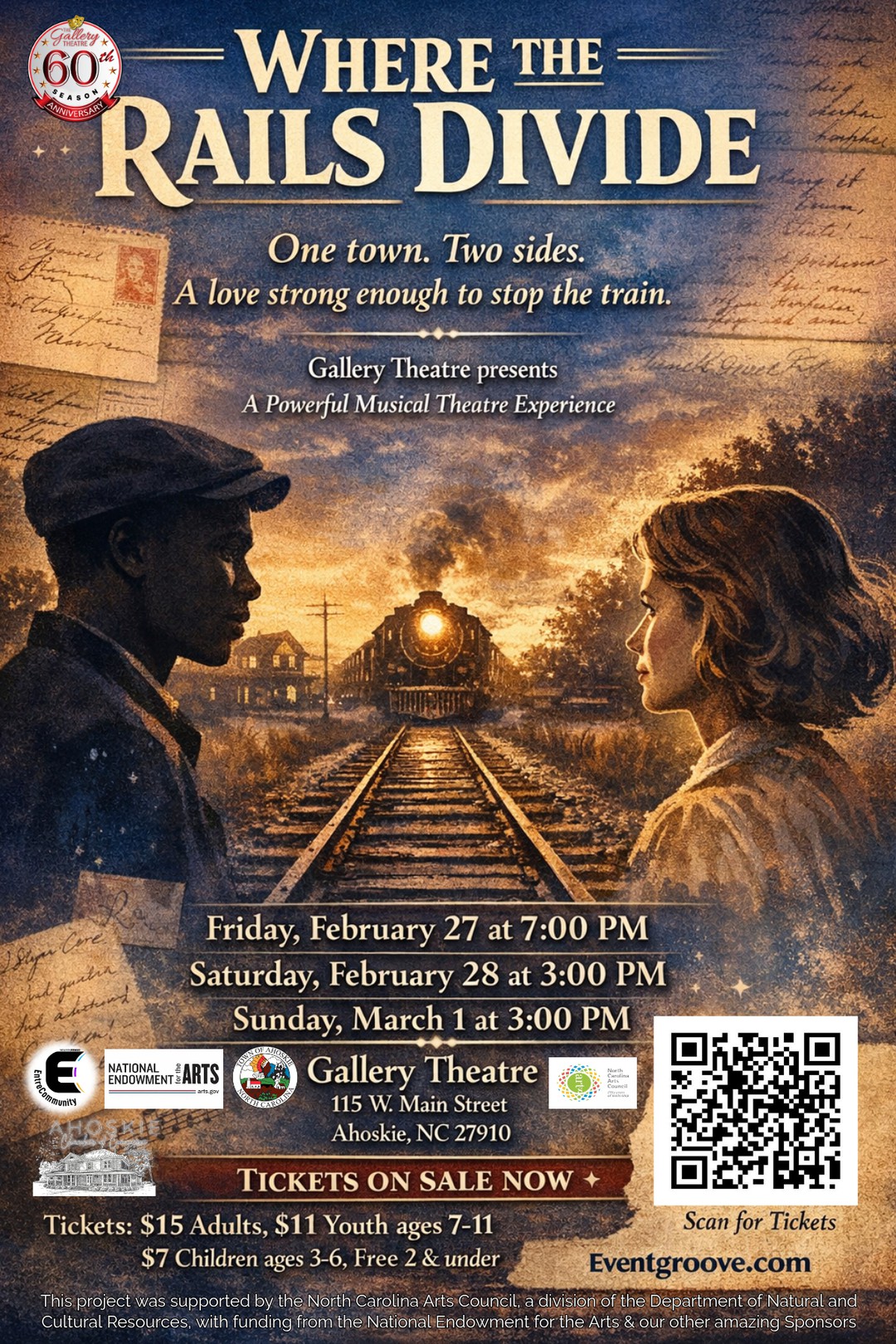The Gallery Theatre 115 Main Street, Ahoskie, NC, United StatesA Powerful Musical Theatre Experience Step into a 1950s railroad town where love dares to cross the line. Where the Rails Divide is an original, moving musical that blends ✨ sweeping love ballads 🎶 big band & gospel-inspired music ❤️ a story of courage, family, and community Set in a town split by the tracks, […]